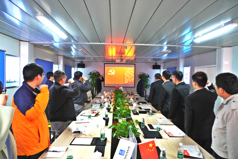 接着,参会人员重点讨论了党支部在推动实现高精尖项目精品工程过程中的战斗堡垒作用。通过讨论,大家一致认为,党支部发挥战斗堡垒作用一直以来是党的优良传统,党支部是党的全部工作和战斗力的基础,是基层工作的核心力量。加强党支部建设,提高党支部的凝聚力和战斗力是我们发挥党支部战斗堡垒作用和党员先锋模范作用的重要举措。我们应当将理论联系实际,有效地把党建工作贯穿和渗透到工作中,形成合力,保障施工安全,推动施工进展。党员同志要统一思想、凝聚共识、振奋精神、增强信心,努力奋斗,增强宗旨意识,发挥先锋模范作用,不忘初心,牢记使命,带动提高高精尖项目施工管理水平。会议最后,全体党员起立,奏国歌,由基建处党支部书记李强、中建八局高精尖项目党支部书记张浩,共同领誓,所有党员重温入党誓词。
