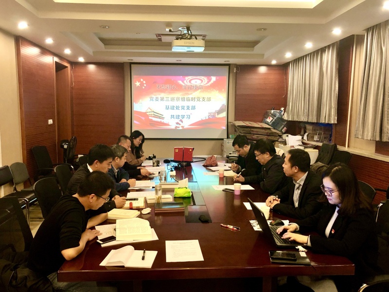 为深入贯彻落实党的十九大精神和习近平新时代中国特色社会主义思想,在全校开展“不忘初心、牢记使命”主题教育之际,11月1日下午,学校党委第三巡察组临时党支部与基建处党支部在化纤楼207室共建学习。第三巡查组组长、临时党支部书记李晓林同志、于洪杰同志、陈国华同志、宋家博同志、汲东野同志,基建处全体党员同志出席了会议。基建处党支部书记李强同志主持了此次会议。