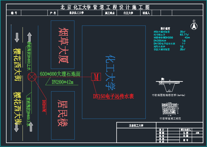 给水供应问题是制约学校发展的瓶颈问题。为改善学校生活、科研、保障用水,学校决定在东校区西面引入第二路DN200的市政供水管,形成环状管网、双回路供水。