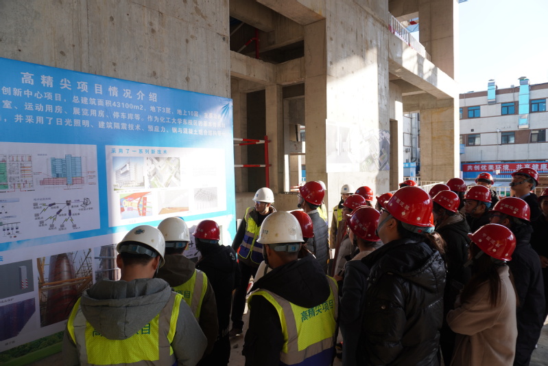 首先,中建八局项目部工程师杨晓峰对高精尖中心建设情况进行了汇报。向同学们详细介绍了高精尖中心的建设目标、功能用途、建筑结构、设计特色和理念、新技术应用等,并介绍了目前施工进度和下一步工作安排,使同学们对高精尖中心有了更加深刻和清楚的认识。