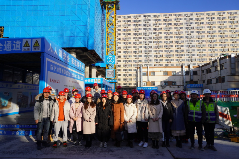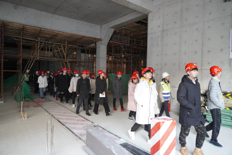 最后在中建八局项目部杨晓峰工程师的带领下,教师和学生代表一同进入施工现场,近距离感受施工情况。