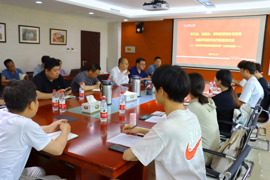 为推动学习贯彻习近平新时代中国特色社会主义思想主题教育走深走实,牢牢把握“学思想、强党性、重实践、建新功”的总要求,联系实际重点学、推动工作促发展,5月15日,新校区建设办党支部开展“推进昌平校区建设高质量发展”系列主题党日活动,与昌平校区各参建单位党员代表开展联学联动,组织召开昌平校区学生代表调研座谈会,为进一步提升建设成果质量,优化人才培养环境,增强师生幸福感、获得感,凝聚共识、征集意见、汇聚力量。活动由新校区建设办党支部书记范凡主持。